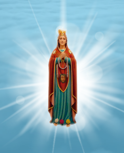 E quando tornò dal suo padrone, trovarono il busto della Vergine, tutta vestita di bianco, con un bambino in braccio e le vesti ancora bagnate.